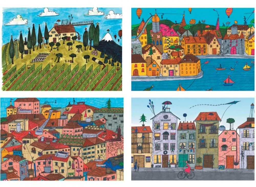 Both Berenguers are educators. Bryan teaches in the wine studies department at Chemeketa Community College, and Emily is an elementary classroom teacher. Her interest in visual art was sparked while drawing alongside her father as a child and led her to study art while pursuing her degrees in French and Spanish literature. After trying various media, she has settled on what she describes as an “ink-driven” style that incorporates gouache and marker.